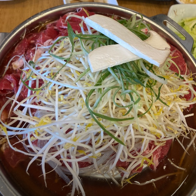 숙주가 듬뿍 들어있어서 식감도, 시원한 국물도 놓치지 않은 절대불고기입니다.