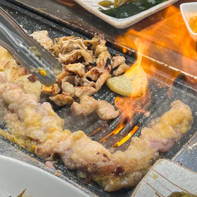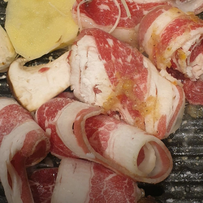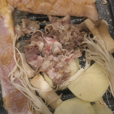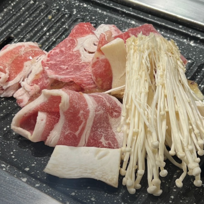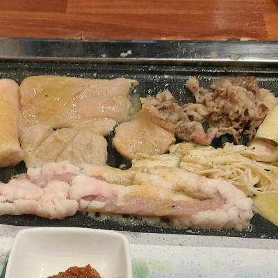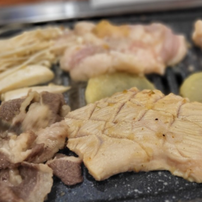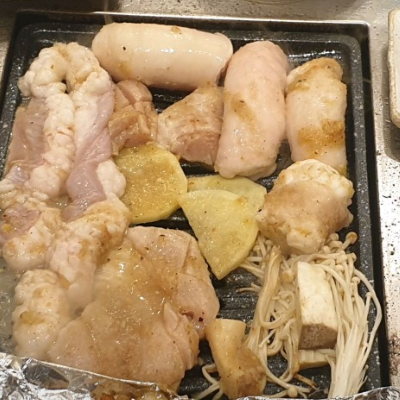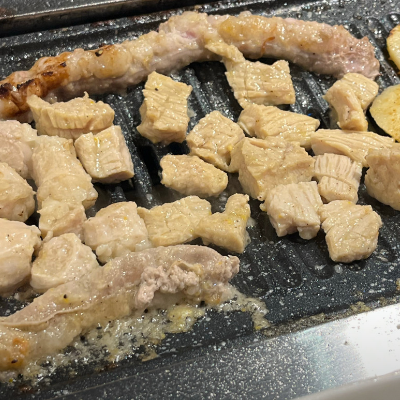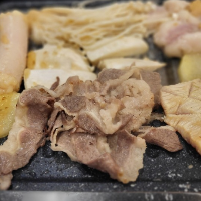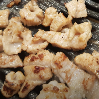처음엔 우삼겹 먼저 맛있게 구워주셔서 편했어요. 우삼겹 같은 경우는 얇기때문에 빨리 먹을 수 있는 장점이 있어요.