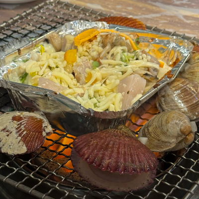 큼직큼직 통실하고 싱싱한 조개를 종류별로 치즈 한가득 올려서 연탄위에서 구워먹으니 얼마나 맛있게요.