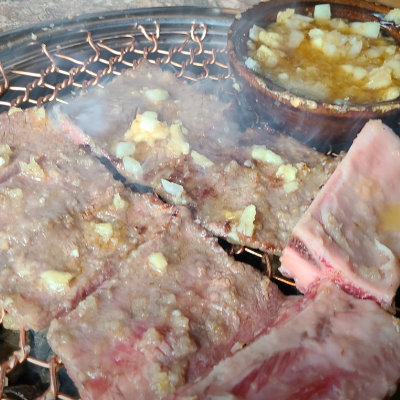 마늘갈비 강추입니다. 돼지고기도 맛있고 육회도 곁들여 먹으니 아주 좋아요.