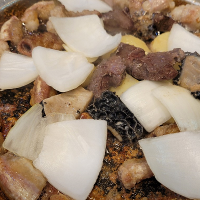 양깃머리, 막창 4인분에, 김치볶음밥 살짝 눌려서 먹었네요. 감자, 양파, 마늘도 구워 먹었어요.