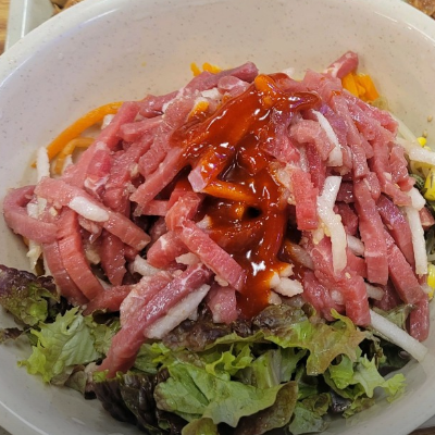 매일 다양한 샐러드, 반찬, 면, 튀김, 고기 메뉴를 8,500원에 뷔페로 즐길 수 있어서 너무 잘 먹고있습니다.