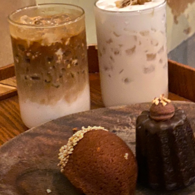 도토리 모양 마들렌이 너무 귀엽고 음료에 들어가는 벌집도 달콤하고 맛있었어요. 까눌레 크고 겉바속촉 제대로였습니다.