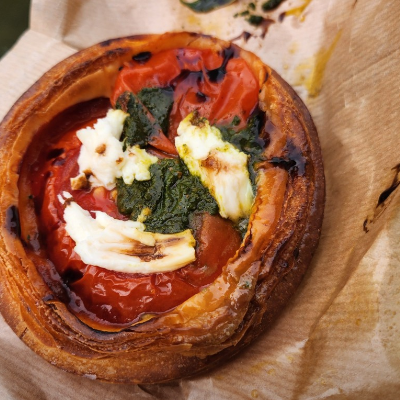 크루아상 모양부터 범상치 않아요. 빵에게 어울리는 표면은 아니지만 탐스럽다는 생각이 들고, 남다름을 추구한 빵의 외관과 다양성이 있어요.