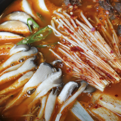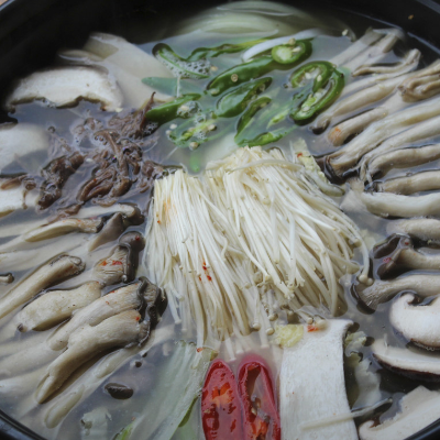 만두 전골에 버섯이 많아 개인적으로 만족합니다. 담백한 국물맛, 배추, 고추가루 모두다 국산이라서 좋아요.