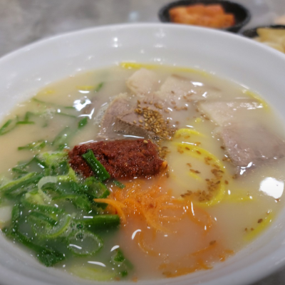 제주도 도착하자 먹은 첫 끼 진한 돼지 육수가 맛있었어요. 제주 첫 식사로 맛있게 먹었습니다.