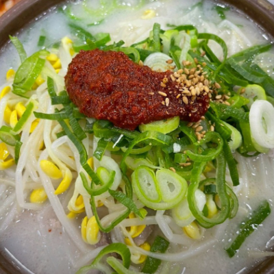 구수한 육수와 시원한 콩나물 부드러운 돼지고기 살코 기까지~ 빨간장 빼고 달라고하면 아이들도 맛있게 먹을수 있는 구수한 돼지국밥이에요.