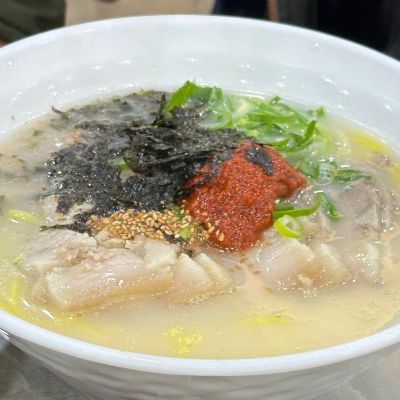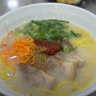 제주도 도착하자 먹은 첫 끼 진한 돼지 육수가 맛있었어요. 제주 첫 식사로 맛있게 먹었습니다.