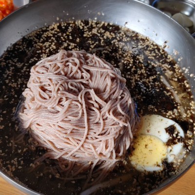 최근 먹어본 막국수 중 가장 맛있었어요. 적당한 메밀 함유의 질기진 않지만 젓가락질 하기 나쁘지 않아요.