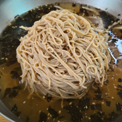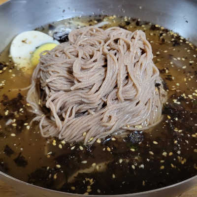 최근 먹어본 막국수 중 가장 맛있었어요. 적당한 메밀 함유의 질기진 않지만 젓가락질 하기 나쁘지 않아요.