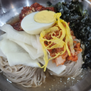 비빔 막국수도 양념장이 들어가긴 하지만 전체적으로 삼삼한 느낌입니다.
