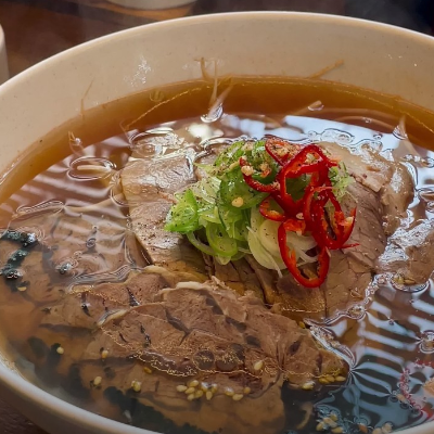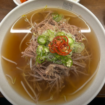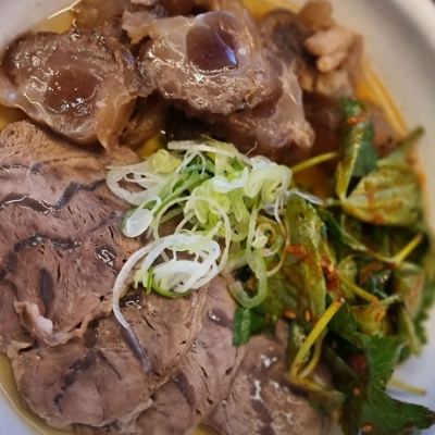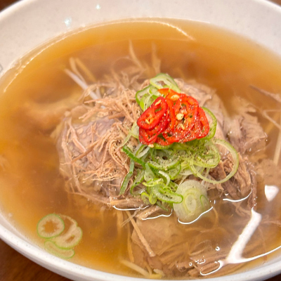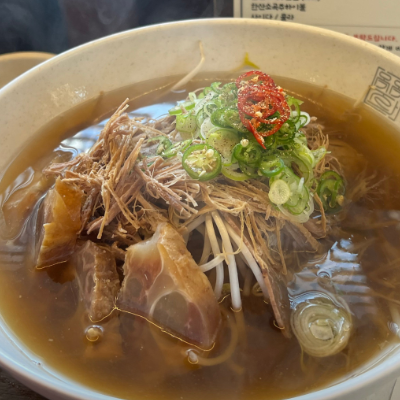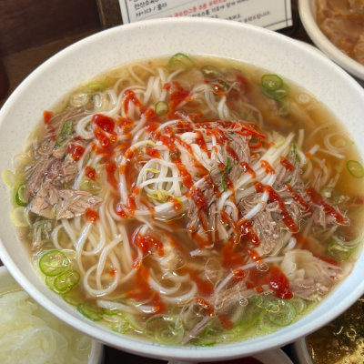면이 쫄깃하고 한국식 쌀국수 느낌이에요. 고기도 부드럽고 스지 강추에요 1인 튀김도 잘 먹었습니다.