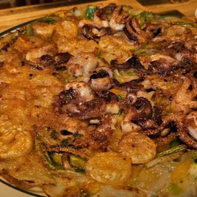 끓일수록 육수가 시원해서 국물로 소주 한병각이예요 사리추가해서 먹을수 있고 쭈꾸미미나리 해물전은 향긋한 미나리와 오동통한 쭈꾸미,새우 조합이 일품이예요.