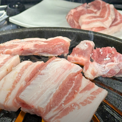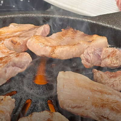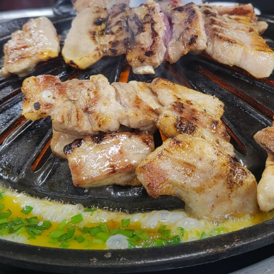 진짜 돼지고기가 소고기처럼 소금이랑 먹을때 맛있는 곳은 첨이에요. 전부 구워주시는데 편하게 먹을 수 있어요.