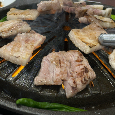 인원수 이상 시켜서 한꺼번에 구워서 천천히 먹기보다 구웠을때 바로 먹어야 그 육즙의 맛을 느낄수 있어요.