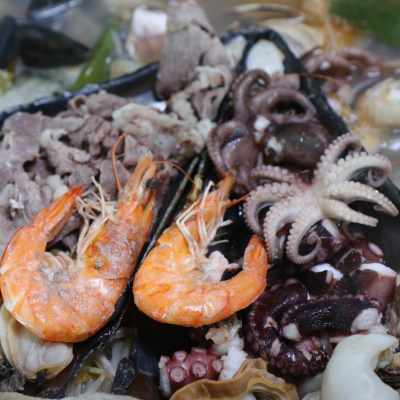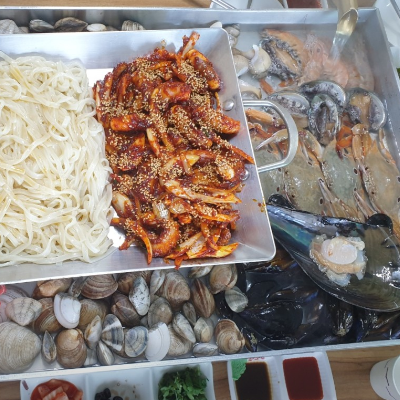 낙지볶음 양념이 진짜 맛있어요. 여기에 칼국수까지 엄지척이예요. 전복 키조개 각종 조개도 다양하게 나오고 비주얼만큼이나 맛도 만족스러워요.