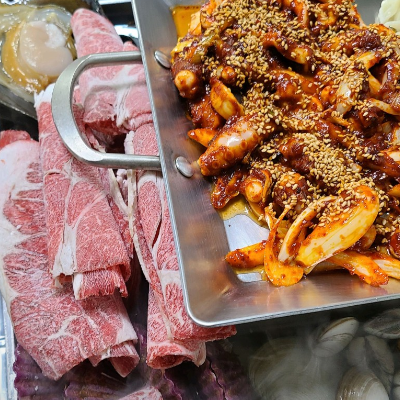 칼국수와 낙지볶음 해산물과 차돌박이까지 맛있게 먹었어요. 철판요리 무조건 추천입니다. 양도 푸짐하게 나오고 해산물고기 같이 먹을 수 있어서 좋아요.