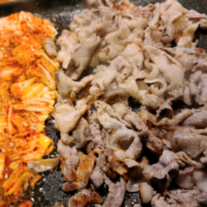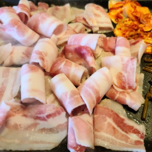 삼겹살은 직화초벌구이를 한번 해서 나오기 때문에 구워먹기 편해요.
