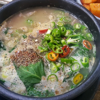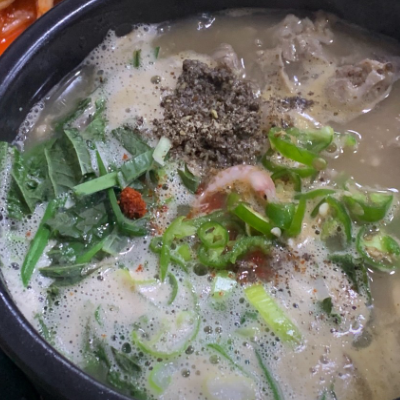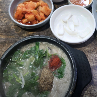 고기가 부드럽고 많은 연예인이 다녀간 만큼 국물이 고소해서 좋아요. 깍두기와 김치는 보통입니다.