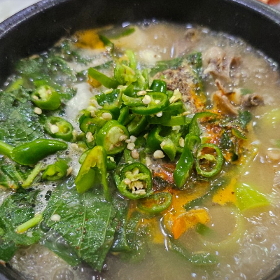 풍성한 고기를 먼저 건져먹고 국물에 밥을말아 먹으면 완전 맛이 좋지요.