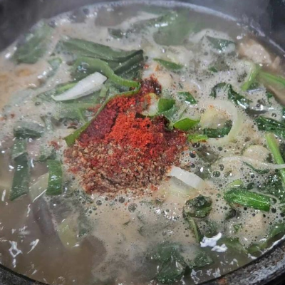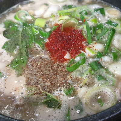 진득한 순대국에 들깨가루를 다섯스푼 더 첨가하고 새우젓의 새우만 한숟가락 퍼서 국물속에 넣고 깍두기 국물 살짝 부어서 간을 맞추면 더욱 더 맛나요.