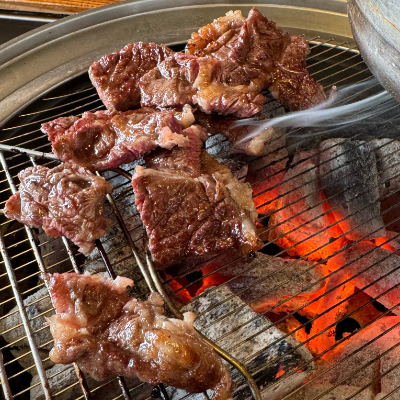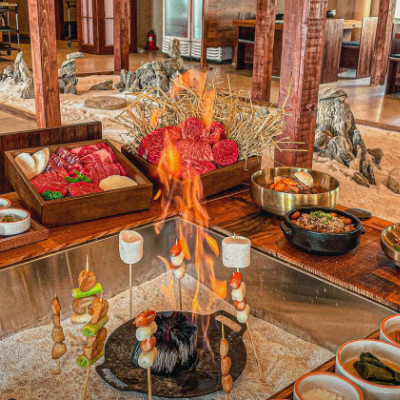 화로도 지금까지 본적없는 분위기여서 신기했습니다 캠핑와서 구워먹는 분위기였어요 밑반찬도 퀄리티가 좋고 숯불도 화력이 약해지면 바로 갈아줘서 좋았어요.