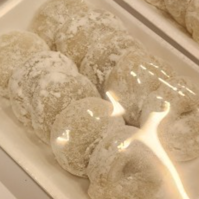 손으로 집자마자 보들보들함이 느껴져요. 보통 찹쌀떡보다 훨~씬 부드러워요. 만든지 얼마안되서 더 그런것 같기도하고요.