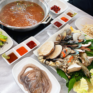 꿈틀꿈틀 싱싱한 생낙지와 해산물의 깔~끔한 맛을담은 해물탕샤브 (야채+칼국수+영양죽 포함)