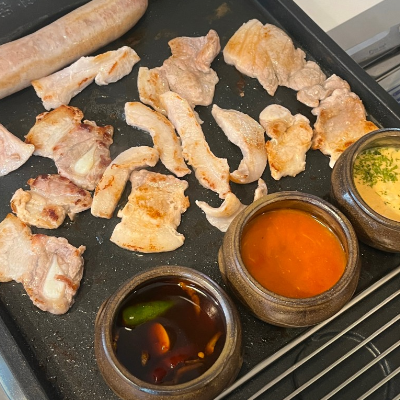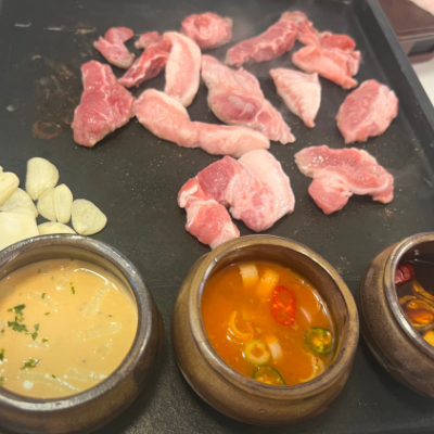 매장이 고기집치고 깨끗하고 직접 만든 소스들이 많아서 이것저것 찍어먹는 재미가 있어요.