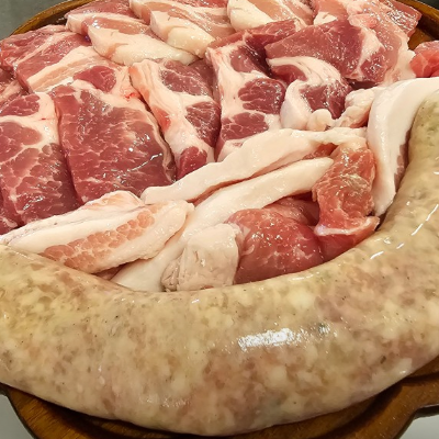 방이동에서 가성비 끝내주는 고깃집이에요. 우리한판에는 삼겹살, 목살, 항정살, 주걱살, 한돈소세지 구성으로 나오는데 대박이죠.