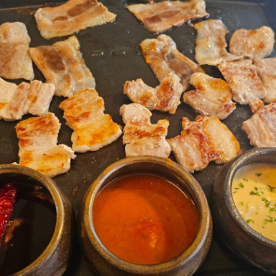 매장이 고기집치고 깨끗하고 직접 만든 소스들이 많아서 이것저것 찍어먹는 재미가 있어요.