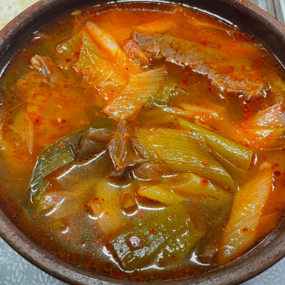 고기도 부드럽고 국물맛이 좋아서 소주 생각납니다. 깍두기, 삭힌 고추도 맛있고 그냥 먹어도 맛있지만 해장용으로 최고일듯 합니다.