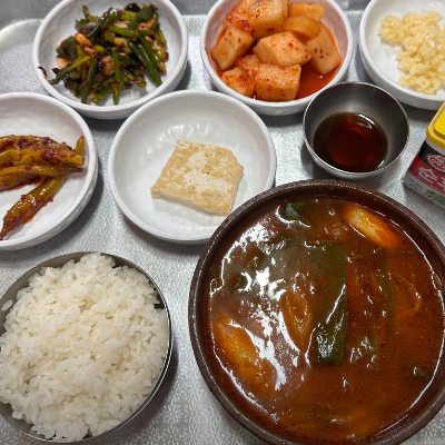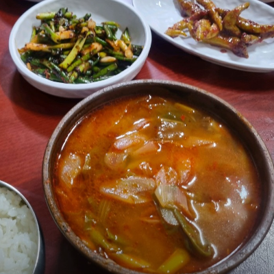 진짜 예전에 엄마가 끓여주셨던 육개장 맛이 났어요. 맛있게 완뚝했어요. 고추절임 무침도 맛있었어요.