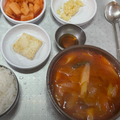 개인적으로는 조금 얼큰했으면 더 더 맛있었을거 같아요~ 아, 처음 밑반찬에 나온 두부 넘 맛있었어요.