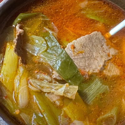 맵거나 짜지 않고 국물이 푹 끓인 소고기국 처럼 구수합니다. 처음에는 그대로 건더기와 국물 먹어보고 다진 마늘, 후추를 첨가하여 기호에 맞게 넣어 먹으면 됩니다.