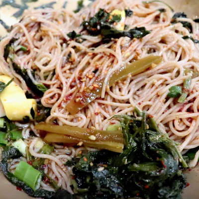 참기름막국수 처음 먹어보는데 은근 매력있어요. 크런치 식감도 살짝 씹히고 궁채나물이 신의한수 물막국수,코다리막국수, 들기름, 참기름막국수 모두 다 맛있어요.