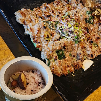 부모님 모시고 식사하기 좋은 곳. 한우 떡갈비 대통밥 정식으로 깔끔하게 먹었습니다. 간도 잘 되어있고 개인적으로 토마토 장아찌 맛있게 먹었습니다.