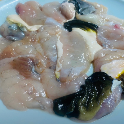 육즙 꽉 찬 복고기에 붙어있는 쫄깃한 복껍질.. 와사비 양념장에 살살 찍어먹으면 일품이죠. 사계절 내내 먹어도 안질리지가 않는 철철 복구이 입니다.