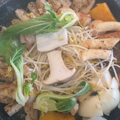 곱창 먹으러 갔다가 감기기운 있어서 곱창 전골 먹었습니다. 육수가 부족하면 양념된 육수도 다시 주셔서 맛있게 잘먹었습니다.