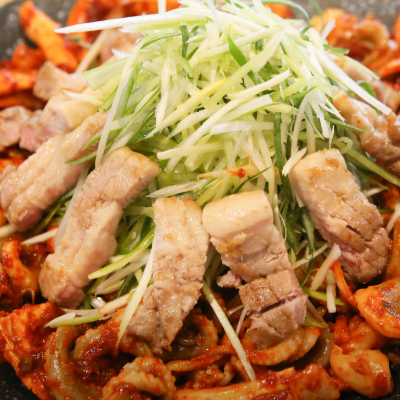 쭈꾸미 집에서 생삽겹, 차돌, 통삽겹을 선택할 수 있다니 너무 좋네요. 적당히 맵고 쭈꾸미 통통해서 맛있어요.