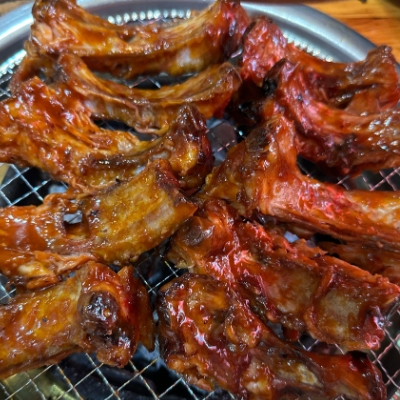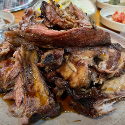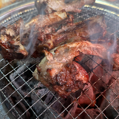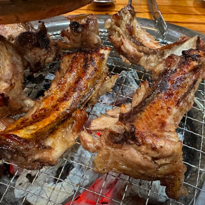 주말 오픈런해서 대기없이 바로 들어갔어요. 초벌해서 나오긴 하지만 숯불에 좀더 구워먹는데 스킬이 부족해서 그런가 한번에 뼈가 쏙 발릴 정도예요.