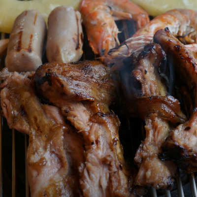 초벌구이로 잘 구워져서 나와서 숯불엔 살짝만 익혀 먹으면 됩니다. 마늘간장바베큐로 시켰는데 소스가 얼마나 맛있는지 진짜 비법소스였습니다.