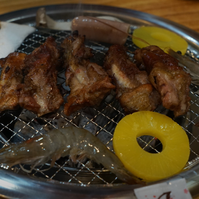 오랜만에 방문한 숑스바베큐는 여전한 등갈비 맛집입니다. 초벌구이한 뒤 제공되서 굽기도 편해요.