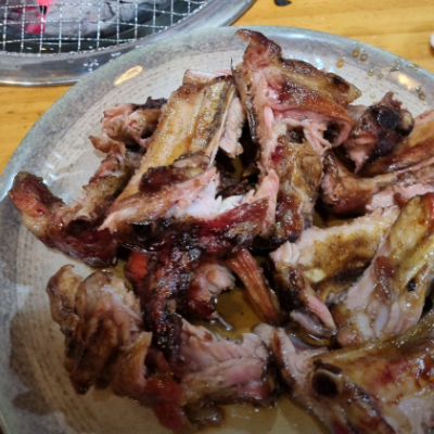 주말 오픈런해서 대기없이 바로 들어갔어요. 초벌해서 나오긴 하지만 숯불에 좀더 구워먹는데 스킬이 부족해서 그런가 한번에 뼈가 쏙 발릴 정도예요.