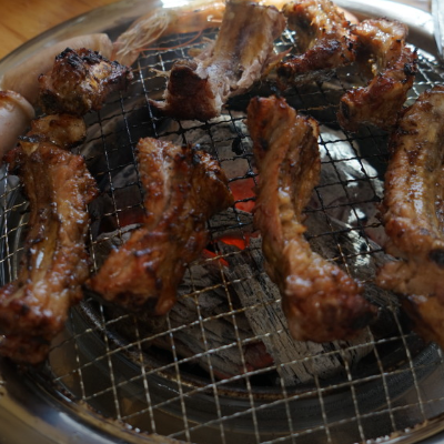 등갈비는 숯불에 올린 뒤 방심하면 금방 타버리니까 자주 뒤집어 줘야 하는게 팁이네요.