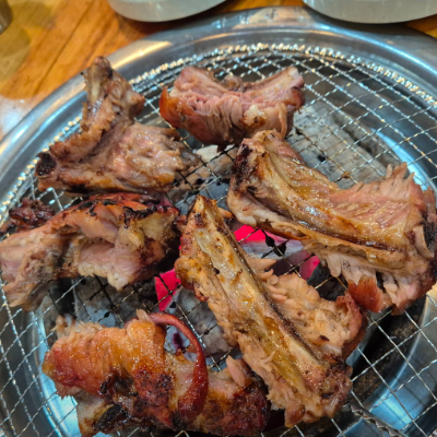등갈비에서 숯향이 미쳤습니다 갈비에 살도 많고 양념도 잘맞았어요 사장님 고기자부심이 보이는 맛이에요.