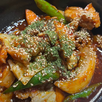 고기양념이 땡초 때문에 느끼하지 않고 진짜 맛있네요. 눈물 흘리면서 먹었어요.