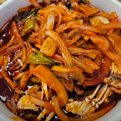 간짬뽕도 양이 굉장히 많았는데요 꽃게도 들어가고 야채와 해물도 고루고루 들어가 있습니다.