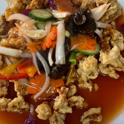 탕수육 소스가 새콤달콤하면서도 끈적임이 없어 좋았습니다. 고기는 부드럽고 씹는 맛이 좋아서 계속 손이 갔습니다.