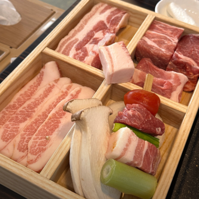 메뉴가 특별해요. 다양한 부위의 고기를 먹을 수 있어서 좋았어요 기본으로 나오는 콘샐러드도 맛있고 노루궁뎅이버섯 신기하고 처음 먹어봐요.